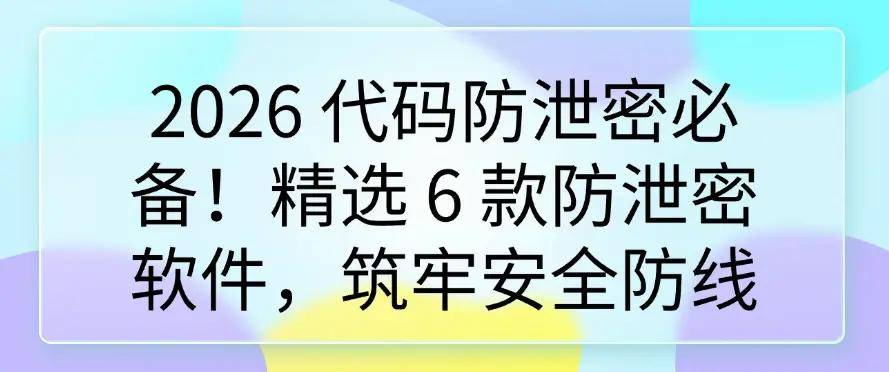 2026 年 6 款代码防泄密软件覆盖终端全流程管控、公共仓库疏忽防护、静态数据加密、代码安全检测、物理设备防丢、网络流量监控六大核心场景,可构建多维度安全防护体系;