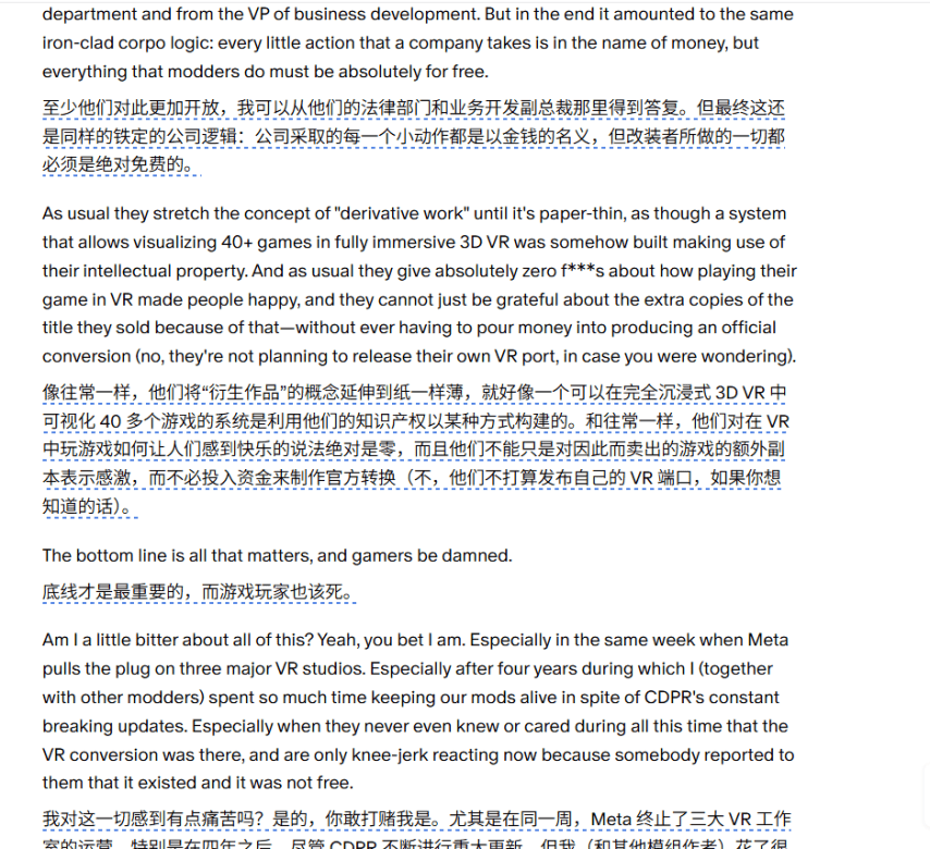 但Luke的回应是啥呢?我就不!与此同时,Luke甚至又强调了一遍自己的VR MOD并不是《赛博朋克2077》的二创社区内容。