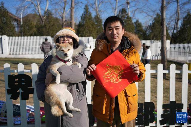 1月31日,在北京市昌平区举行的一场宠物庙会上,宠物主人与宠物合影。新华社记者 谢晗 摄