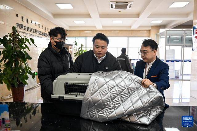 2月6日,在呼和浩特白塔国际机场,工作人员给待托运的宠物航空箱套上保温棉,让宠物在寒冷天气中能够舒适保温。新华社记者 李志鹏 摄