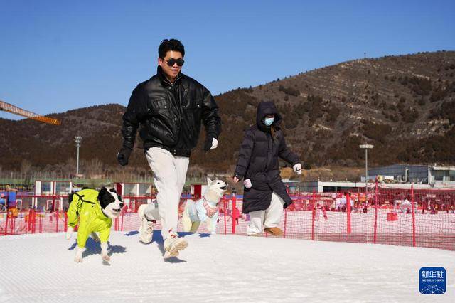2月7日,在北京渔阳·宠趣里宠物滑雪主题乐园,主人引导宠物狗越过雪坡,体验“雪地障碍挑战赛”项目。据“宠趣里”乐园负责人介绍,乐园自2025年12月22日开放以来,已累计接待近千只宠物狗。新华社记者 周汀鹭 摄