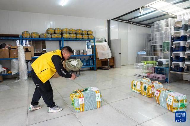 1月31日,在云南省昆明市,空运出发前,一家宠物托运公司的工作人员为打包好的托运宠物拍照记录,并同步给顾客。新华社记者 高咏薇 摄