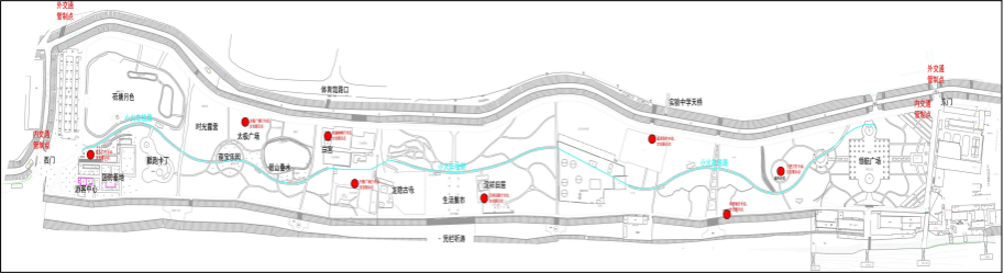 “三把刀”打卡点、非遗墙打卡点、篮球场打卡点、汉祥旧居打卡点、竹影广场打卡点、库迪咖啡打卡点、太极广场打卡点、景区西入口打卡点