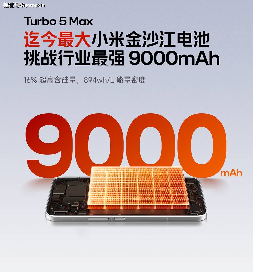 推荐理由:红米Turbo5 Max是小米电池容量最大的手机,9000mAh的金沙江电池硅含量高达16%,能量密度为894Wh/L,1600次循环后电池剩余容量大于80%,使用寿命长达5年。